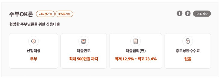 주부를 대상으로 한 상품입니다. 소득이 없는 주부도 신청가능합니다. 대출한도는 500만원까지이며 금리는 연 12.9~23.0% 사이에서 정해집니다.